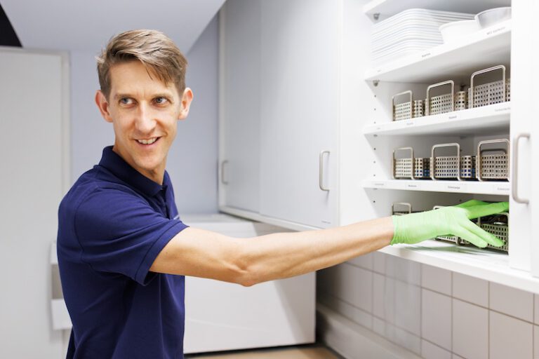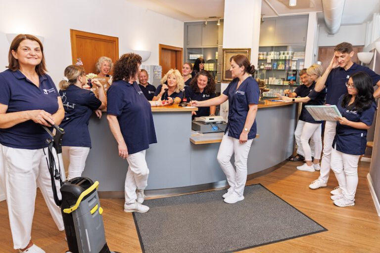 Unsere Praxis in der Leopoldstraße 3 bietet seit 1997 in acht modernen Behandlungsräumen optimale Voraussetzungen für eine professionelle und hygienische Behandlung. Regelmäßige Fortbildungen und kontinuierliche Modernisierungen sorgen dafür, dass wir stets nach aktuellen medizinischen Standards arbeiten.